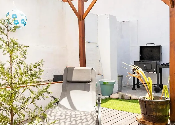 Lisbon House With Private Garden Bbq, With Easy Parking Near Tejo, Fast Access To Alfama & Downtown Villa ligt op 2 km afstand van Castelo de São Jorge en nodigt gasten uit om te ontspannen op een terras.